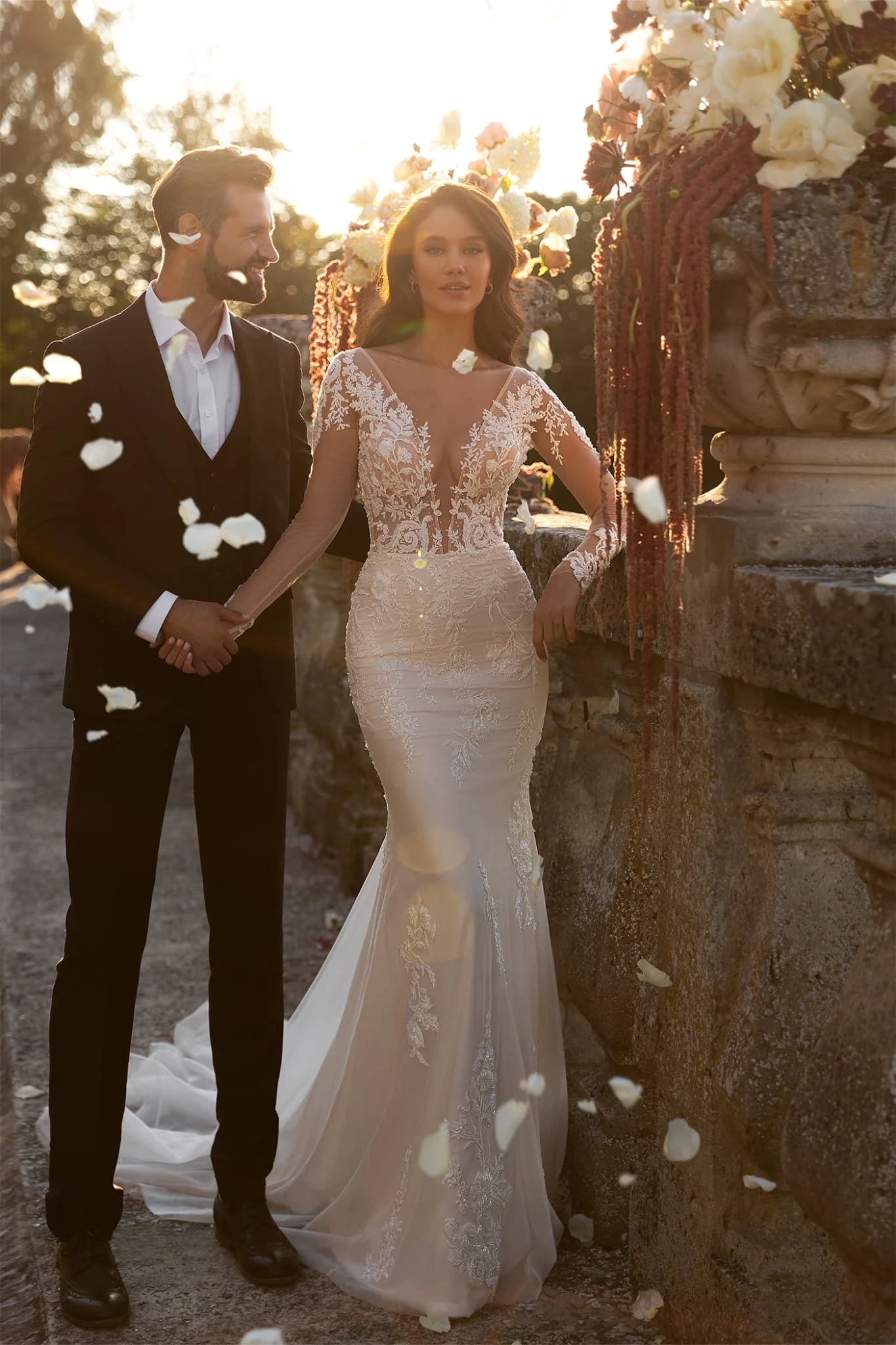 Denne lekre og figurnære brudekjolen med lange ermer heter Nigrina og er fra Bianco Evento ltd. edition.