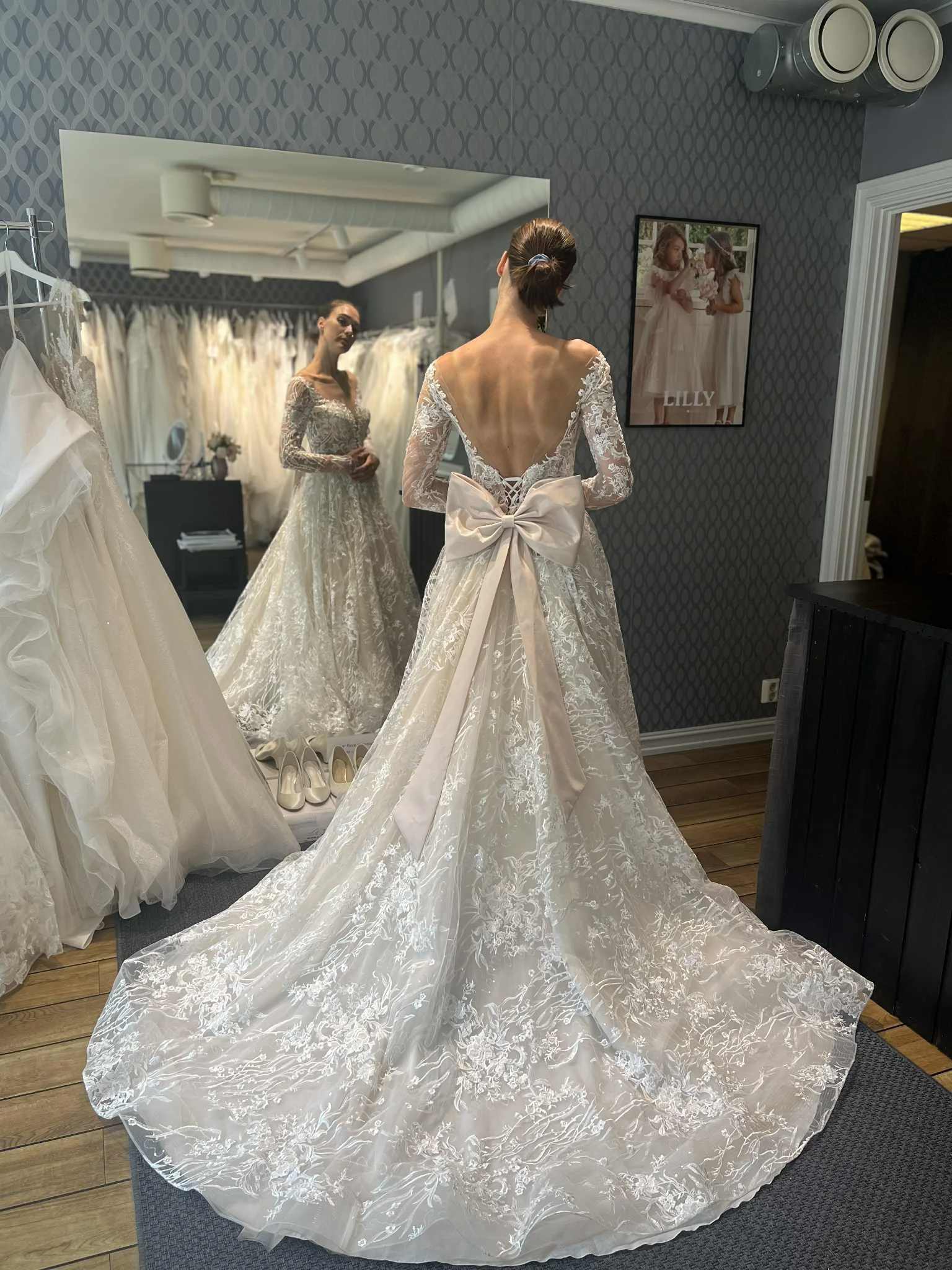 Her ser du ryggen på den bohemske brudekjolen