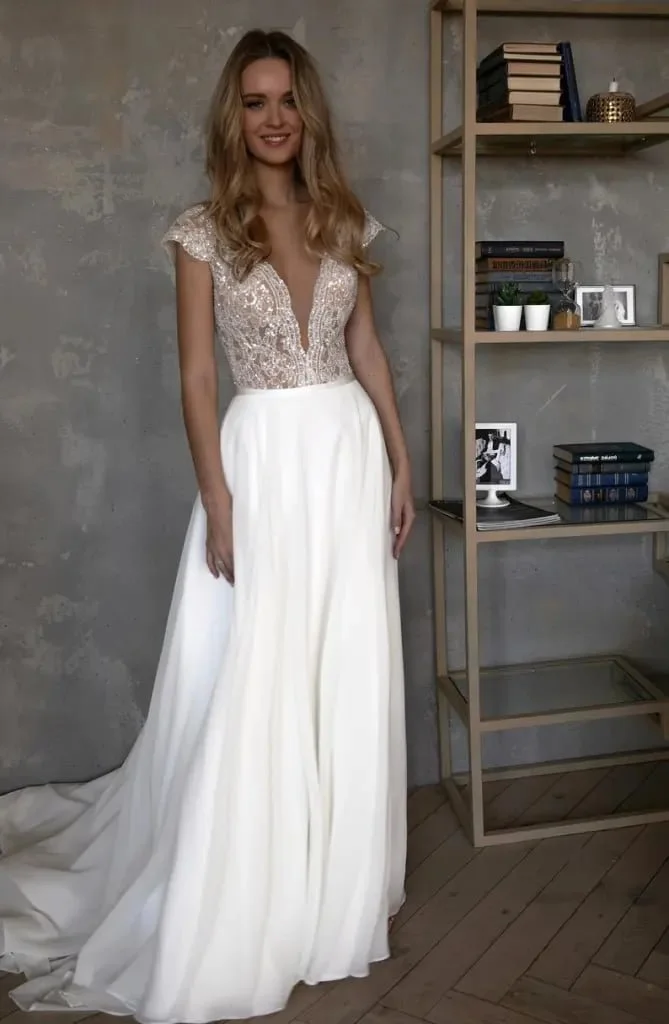 Klassikeren Dalila i A-fasong som alle er fin i. Leter du etter en enkel brudekjole, så er denne kjempefin.